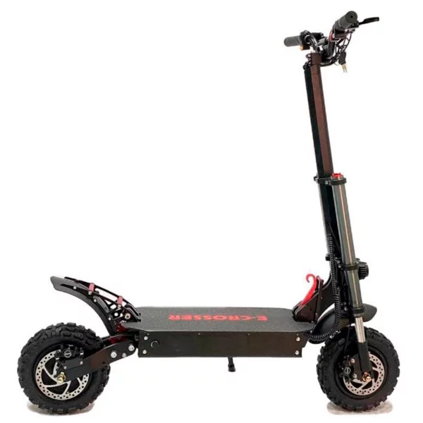 Crosser Rocket – полноприводный электросамокат, предназначенный для езды по бездорожью. Модель изготовлена в крепком алюминиевом корпусе и имеет вес 41 кг. Crosser Rocket оснащается электроприводом суммарной мощностью 3200 Вт, питающейся от аккумулятора емкостью 25 Ач. Он позволяет развивать скорость до 81 км/ч, а дальность пробега от одного заряда может достигать 80 км. Для замедления и остановки в электросамокате используются два дисковых тормоза спереди и сзади. Колеса Crosser Rocket получили высокие протекторы и систему амортизации. Дополнительно у модели предусмотрены фара и габаритные огни для более безопасной езды при плохом освещении.