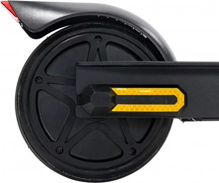 Широкая дека со специальным покрытием позволяет райдеру уверенно стоять и не даст ему соскользнуть во время движения, а наличие электрического тормоза делает поездки безопаснее.