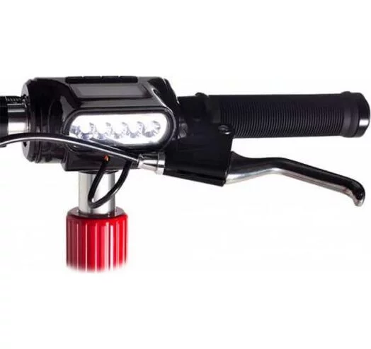 Дополнительный ножной тормоз скрыт под крылом заднего колеса. Для вечерних прогулок в верхней части рулевой стойки предусмотрена светодиодная фара. Кнопка включения расположена на ней же.