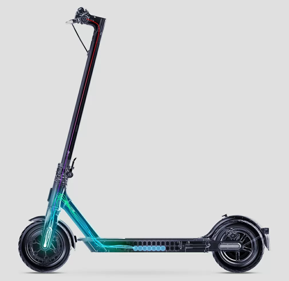 Противоскользящая пневматическая шина устойчива к неровностям на дороге. Сбавив скорость легко проехать скользкую грунтовую дорогу. Передняя и задняя колеса диаметром 8.5 дюймов, обладают превосходными амортизационными свойствами. Большинство городских дорог даже с искусственными неровностями в виде «лежачих полицейских» самокат преодолевает без проблем.